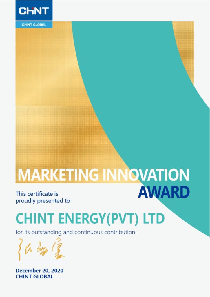 CHINT Energy (Pvt) Ltd., Sri Lanka’s authorized and sole distributor of CHINT electric products has been awarded the prestigious ‘Marketing Innovation Award’ at the CHINT Global conference held in January 2021.